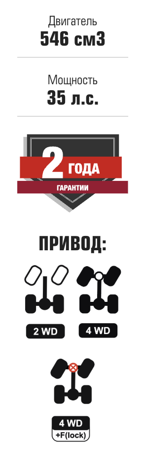 Современная линзованная оптика ярко освещают дорогу и гарантируют безопасность передвижения в темное время суток, а крупный протектор колес даст хорошее взаимодействие с грунтом. Продуманная эргономика обеспечивает высокий уровень комфорта как для водителя, так и для пассажира, а вместительный бензобак и небольшой расход топлива приятно удивит любого владельца!